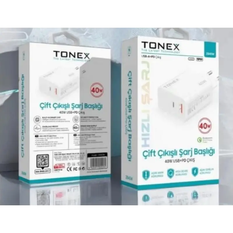 Tonex 2B40W Cep Telefonu USB-A TYPE-C Hızlı Şarj Aleti Çift Başlık 40W