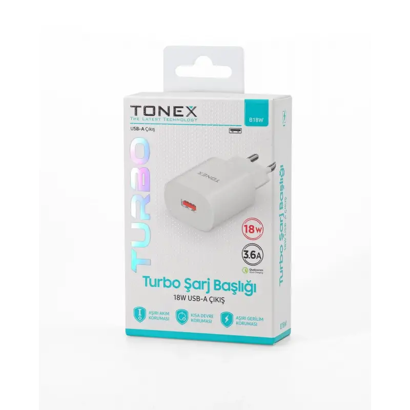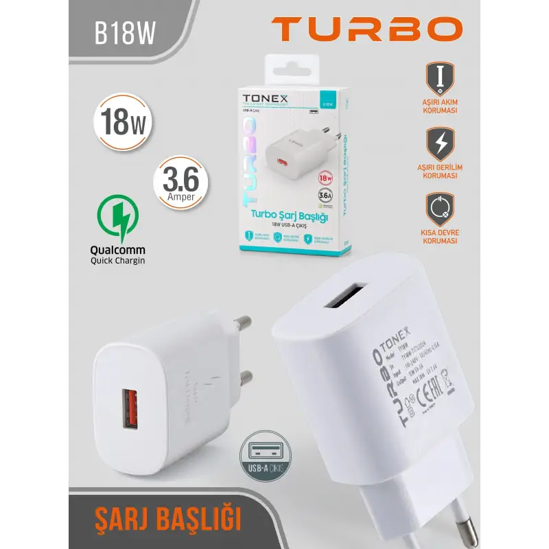 Tonex B18W Cep Telefonu USB-A Hızlı Şarj Aleti Başlık 18W 3.6A
