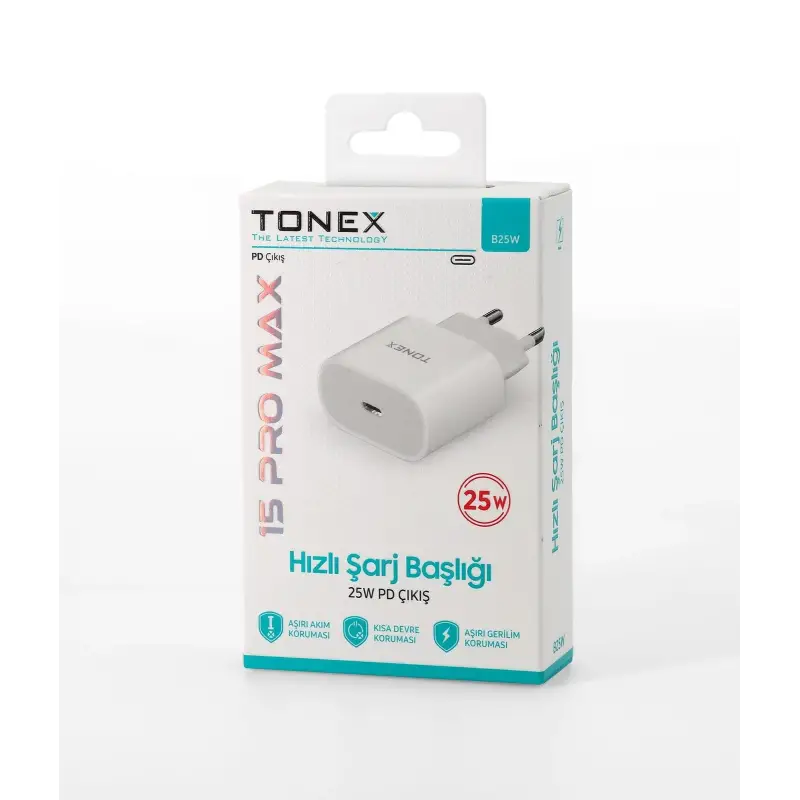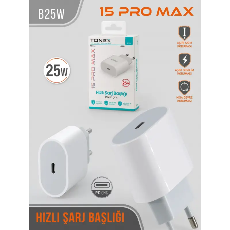 Tonex B25W Cep Telefonu 15 Pro Max Hızlı Şarj Aleti Başlık 25W