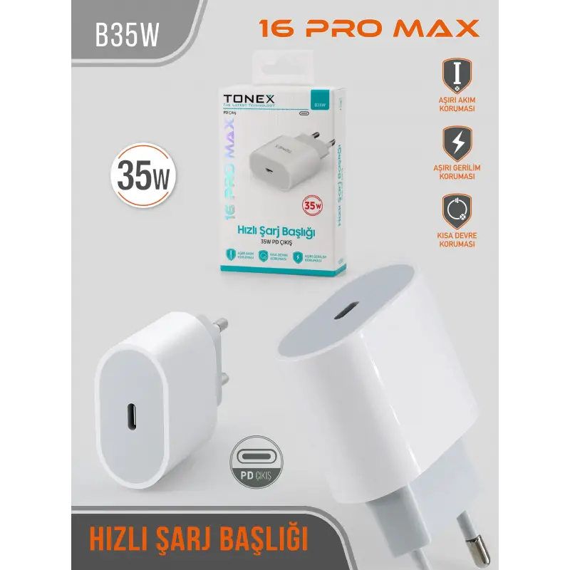 Tonex B35W Cep Telefonu 16 Pro Max Hızlı Şarj Aleti Başlık 35W