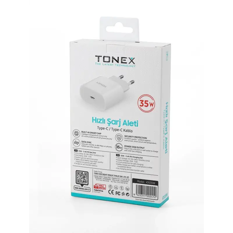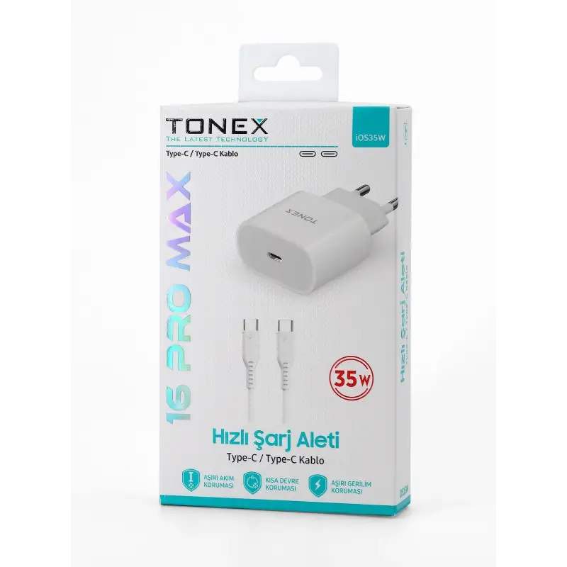 Tonex IOS35W Cep Telefonu İPhone 16 Pro Max Hızlı Şarj Aleti 35W Set