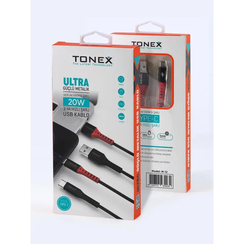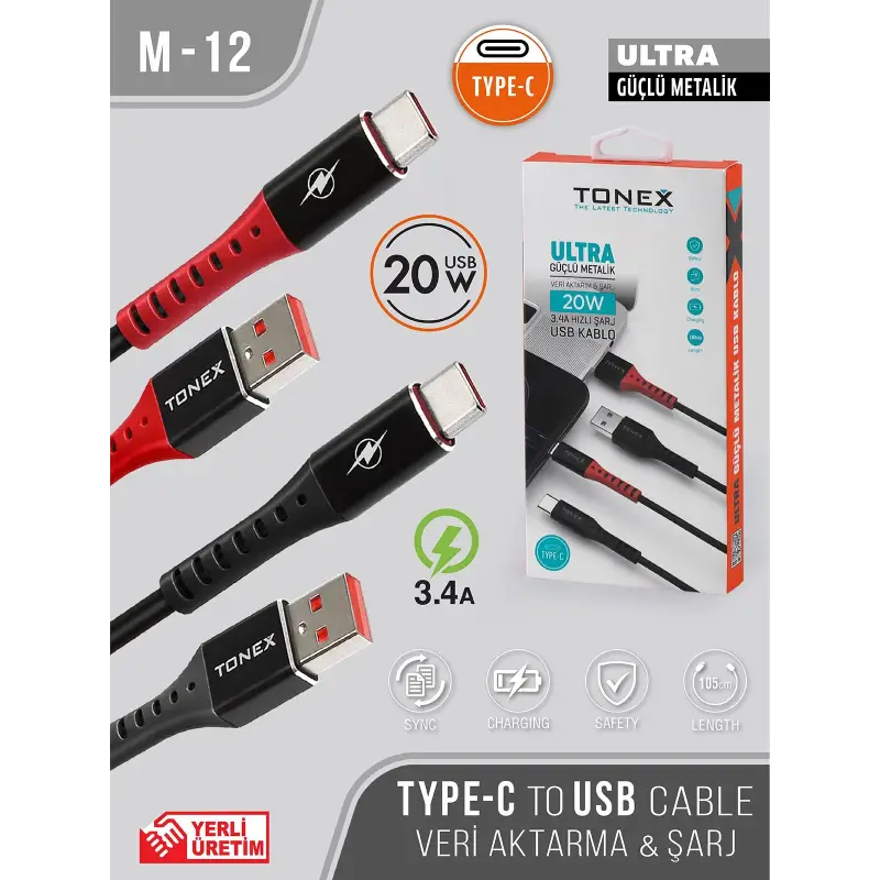 Tonex M12 Cep Telefonu Şarj Kablosu TYPE-C USB Ultra Güçlü Metalik Kablo 20W