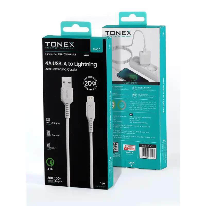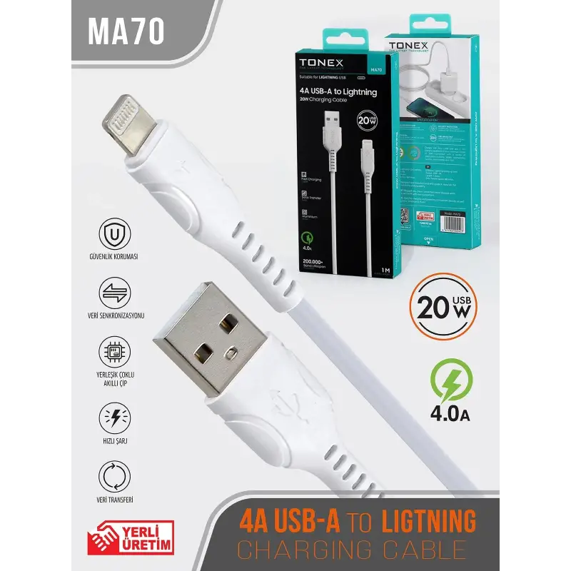 Tonex MA70 Cep Telefonu Şarj Kablosu Lightning USB Kablo 20W