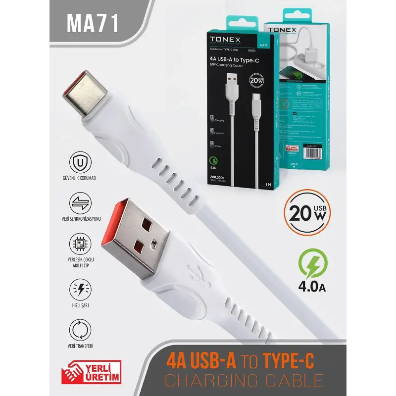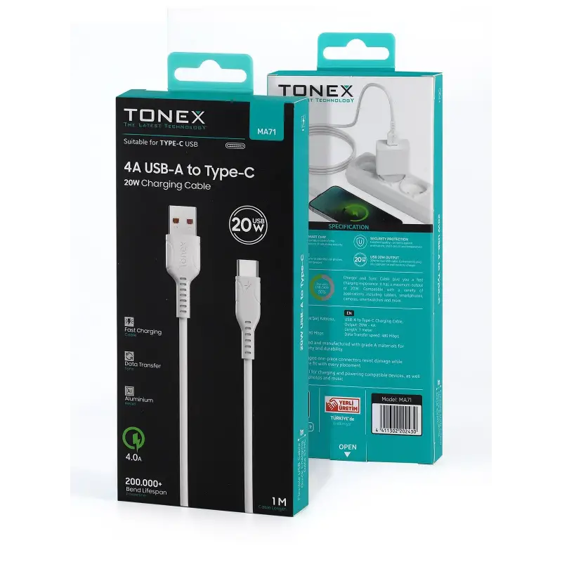 Tonex MA71 Cep Telefonu Şarj Kablosu TYPE-C USB Kablo 20W