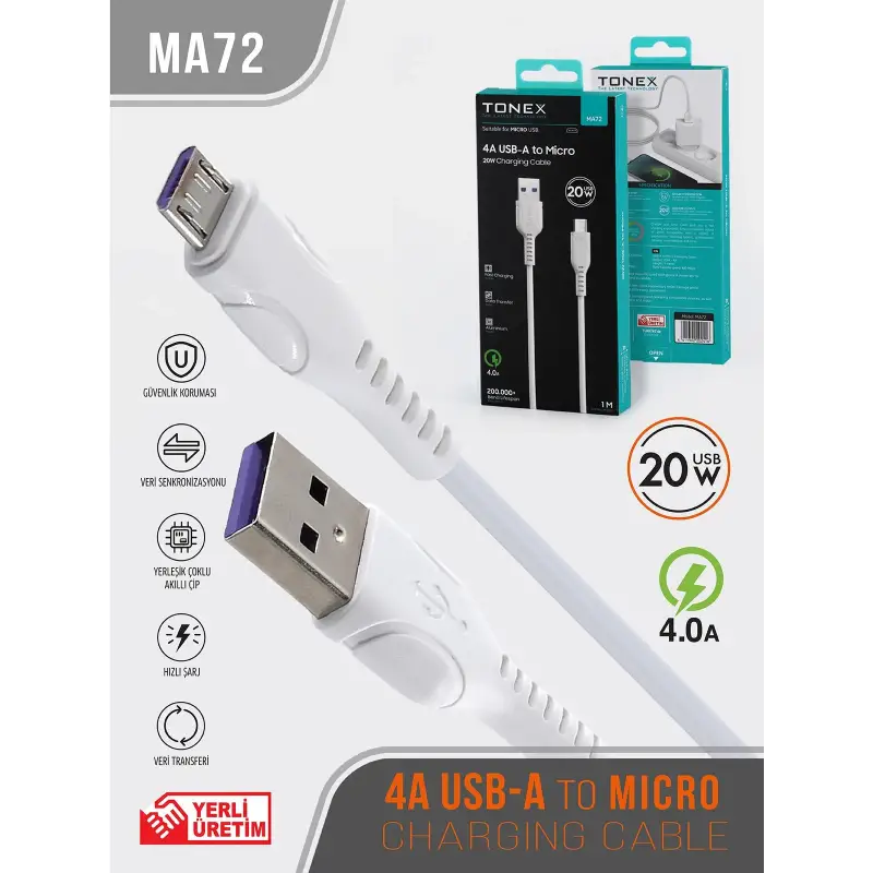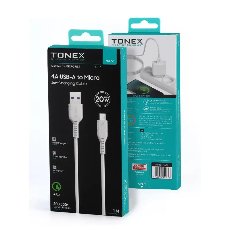 Tonex MA72 Cep Telefonu Şarj Kablosu Micro USB Kablo 20W