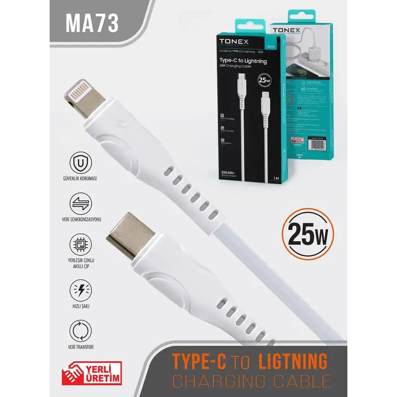 Tonex MA73 Cep Telefonu Şarj Kablosu TYPE-C IOS Kablo 25W