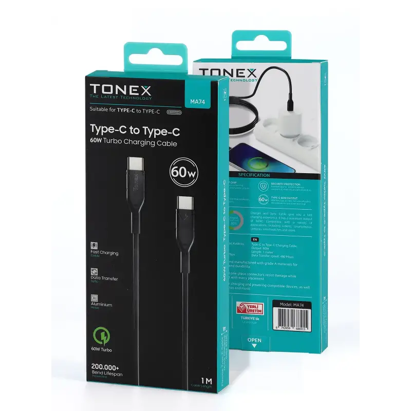 Tonex MA74 Cep Telefonu Şarj Kablosu TYPE-C To YYPE-C Kablo 60W