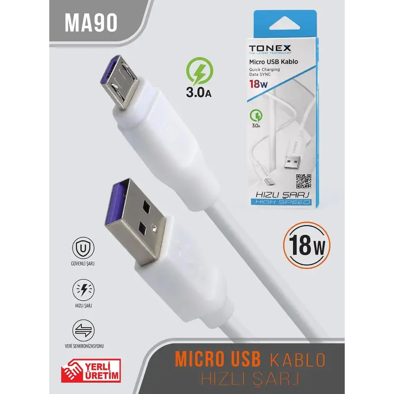 Tonex MA90 Cep Telefonu Şarj Kablosu Micro USB Kablo 18W 3.0A