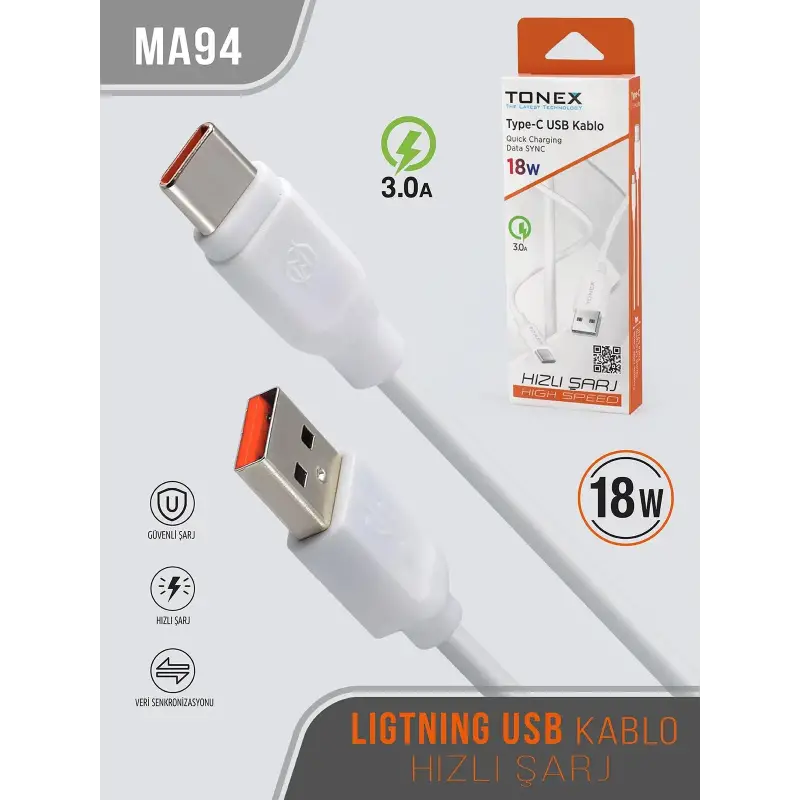 Tonex MA94 Cep Telefonu Şarj Kablosu TYPE-C USB Kablo 18W