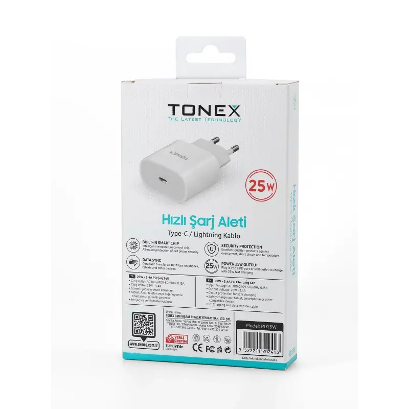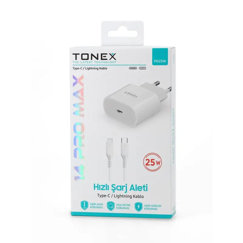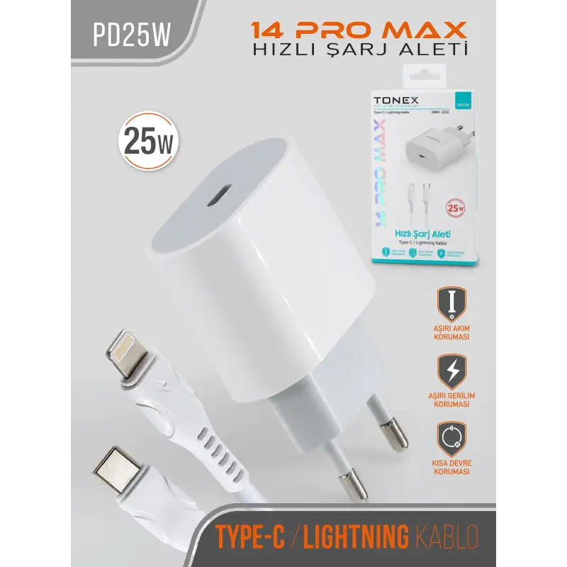 Tonex PD25W Cep Telefonu İPhone 14 Pro Max Hızlı Şarj Aleti 25W Set