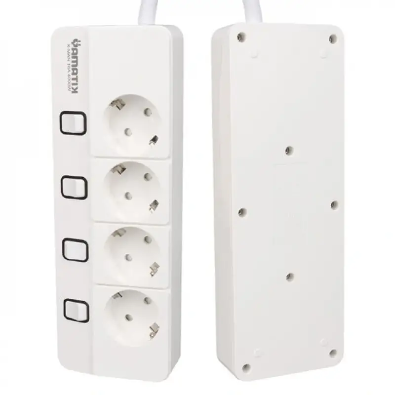 Yamatik X-man-104 A-class 4'lü Ayrı Anahtarlı 2 Metre Akım Korumalı Grup Priz 1400 Joule
