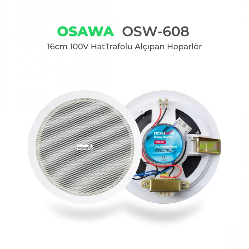 OSW-608 Alçıpan Tavan Hoparlör 16cm 100V Trafolu Beyaz
