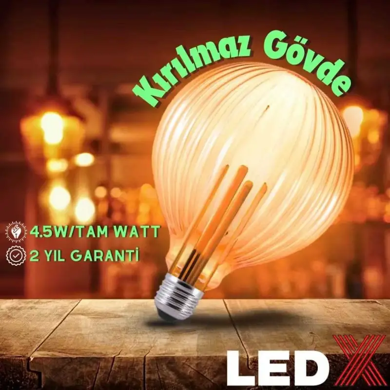Ledx G-95 Kırılmaz Gövde 4,5 Watt Çizgili Rustik Ampul