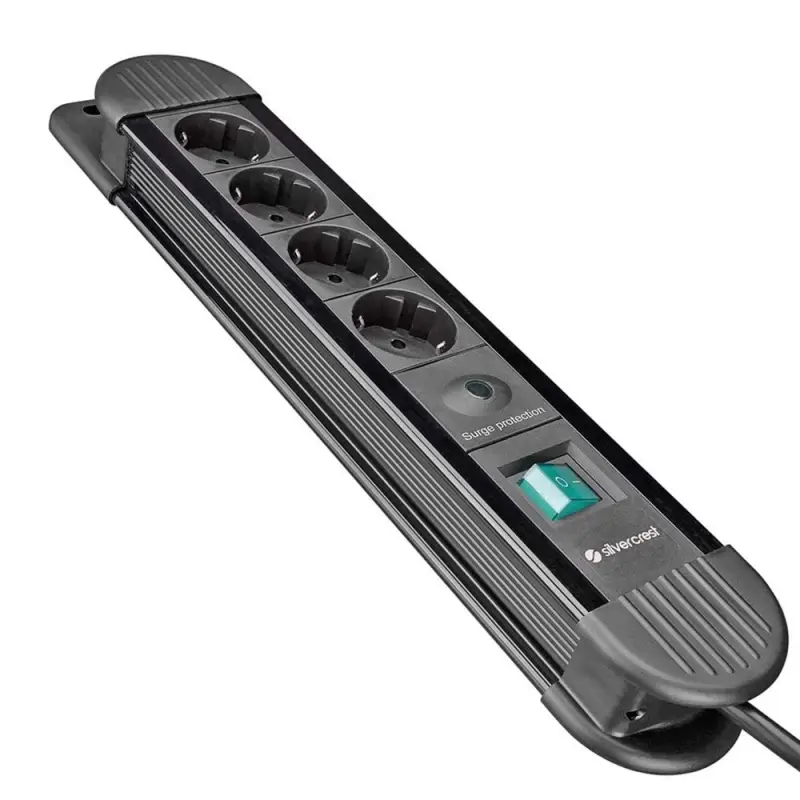 Silver Crest SCKS04 1.5m 3G1.5mm2 900 Joule 4Lü Akım Siyah Priz Çoklayıcı