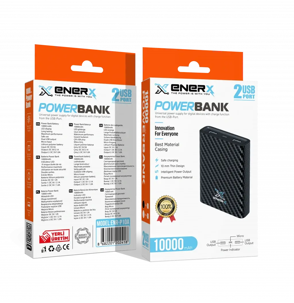 Enerx ENR-P10A Powerbank 10.000 Mah 2xUSB+Micro 1A Beyaz