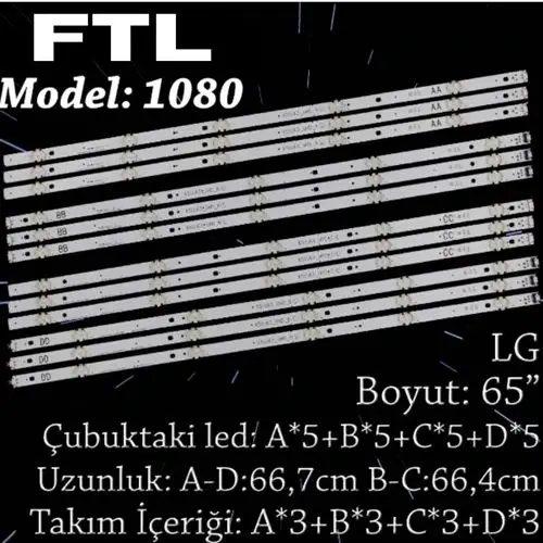 Fully-set-3605 Vestel 65u9500, 65u9400, 65ul9500 65r7540ua, 65r7540ub, Hıtachı 65ht8060ud Tv Led Bar, Jl.d65081330-078 Tv Led