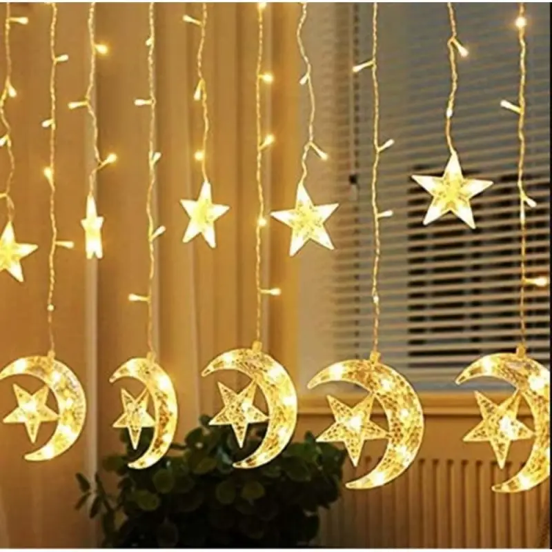 Rewel Aylı Perde Led Işıklar Animasyonlu Fişli Sarkıt Dekoratif AyYıldız Saçaklı Led Kumandalı Perde Led 313070