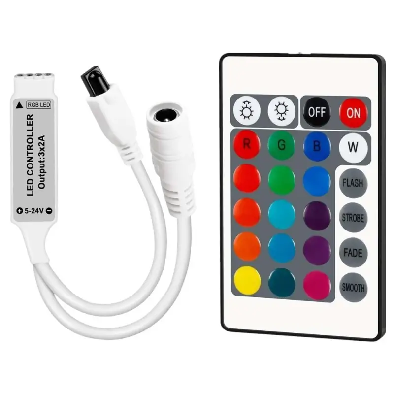 Rewel RGB Kontrol Cihazı 5-12-24 Volt 3x2 Amper Mini 24 Tuşlu Led