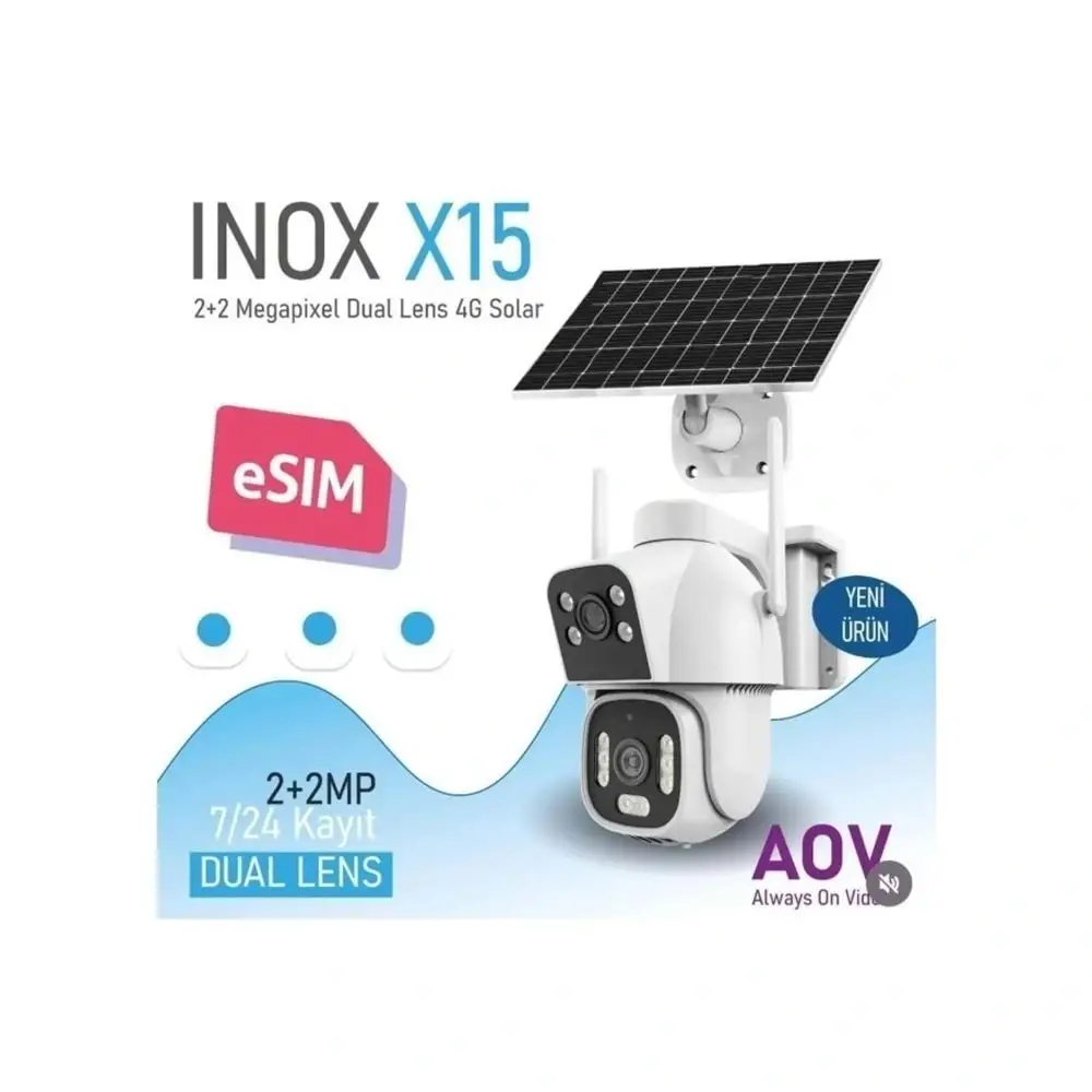 Inox X15 Solar Güneş Enerjili Kamera E-Sim Kartlı 4mp Çift Kameralı