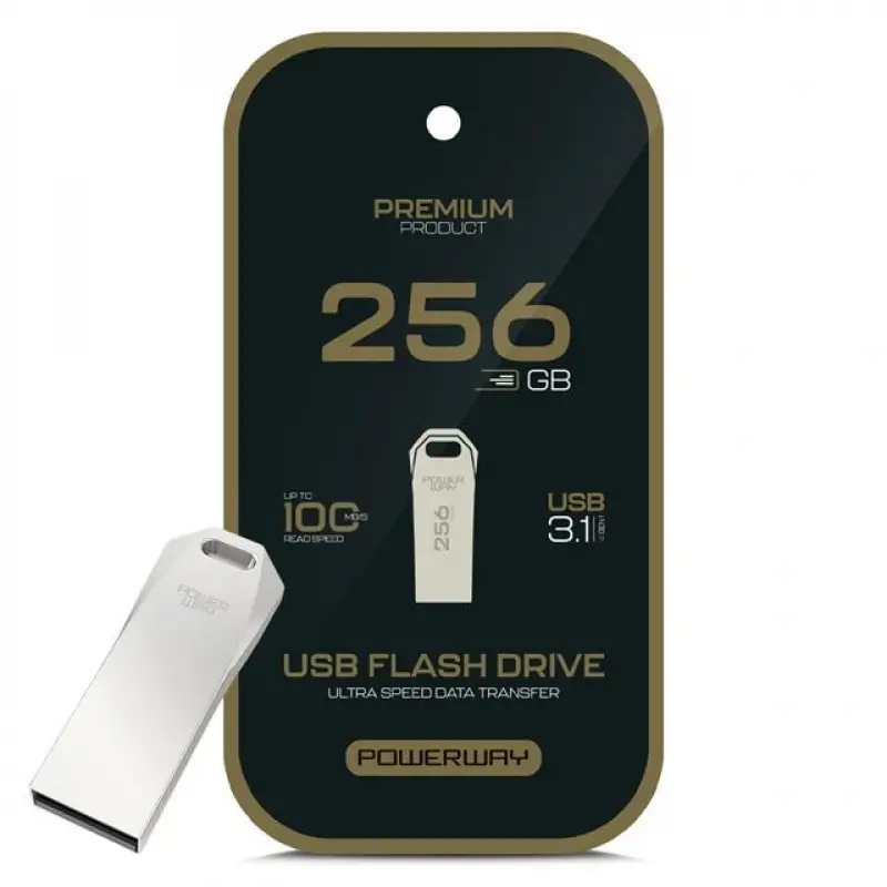 Powerway Premium 256 Gb 100mb/s Ultra Hızlı Usb 3.1 Metal Silver Flash Bellek
