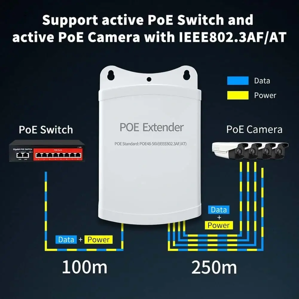Poe Genişletici 1 Giriş 4 Çıkış Poe + Tekrarlayıcı 10/100 Mbps 250m Genişletme 60W Poe Anahtarı Enjektörü Ve Cat5/6 Kablosu Üzerinden Güvenlik POE Kamerası İçin