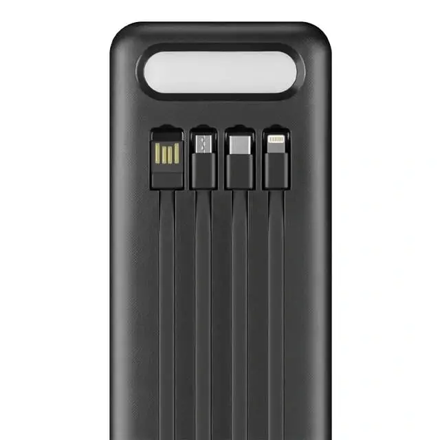Enerx ENR-P10DC Powerbank 10.000 Mah 2A Dijital Ekranlı Fenerli Dahili Kablolu USB+Type-C+Micro+İphone Siyah