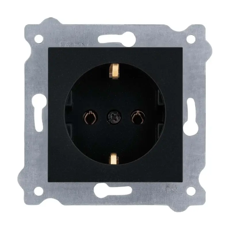 EXEN KARELL METALİK SİYAH Topraklı Priz (Çerçeve Hariç)