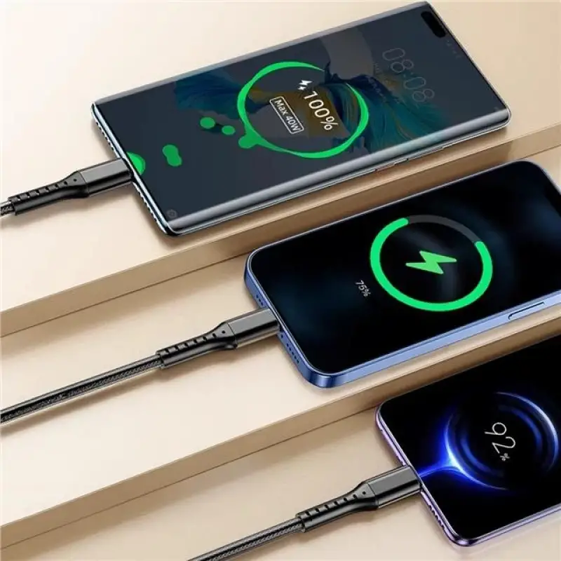Powermaster Pm-2368 Micro Usb - Type-c - Lightning Şarj Ve Data Kablosu 2.1 Amper 110cm Örgülü