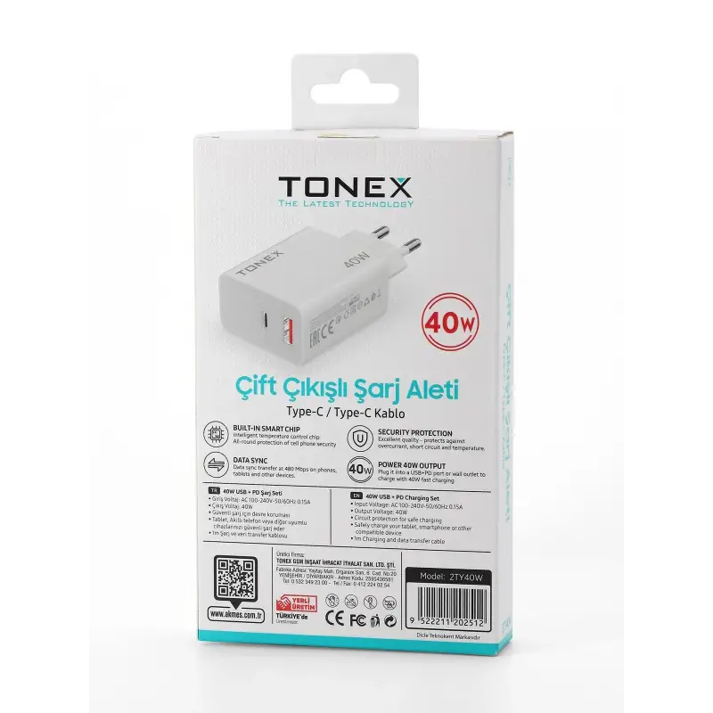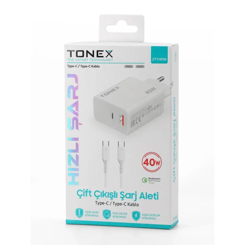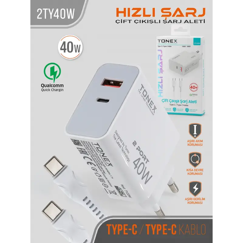 Tonex 2TY40W Cep Telefonu TYPE-C Hızlı Şarj Aleti 40W Set Çift Çıkış