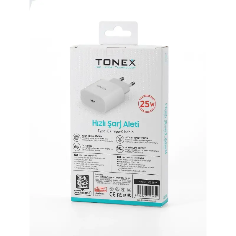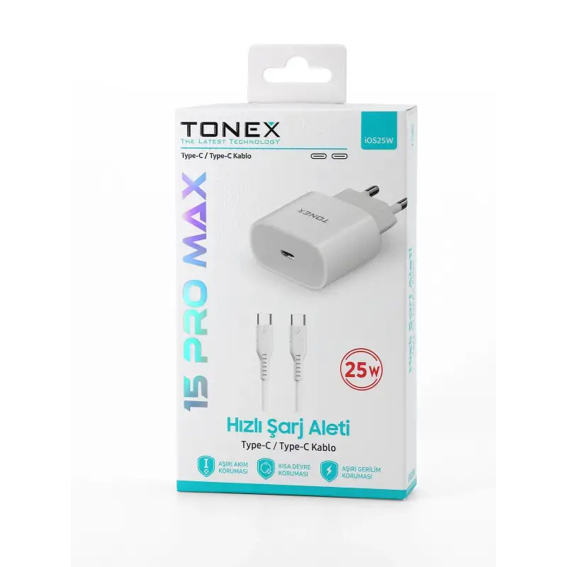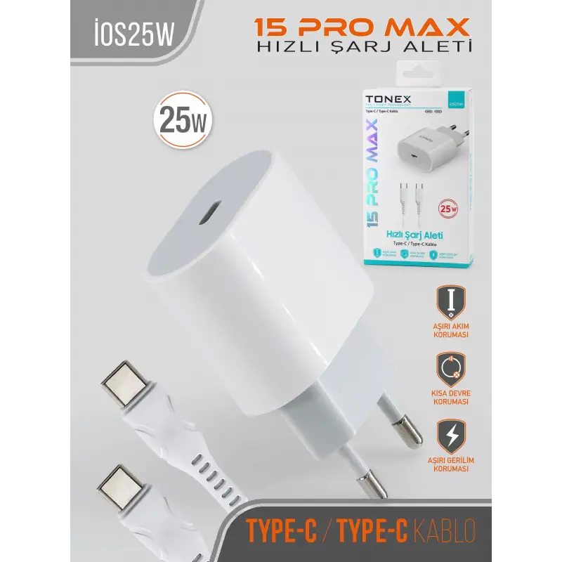 Tonex IOS25W Cep Telefonu İPhone 15 Pro Max Hızlı Şarj Aleti 25W Set