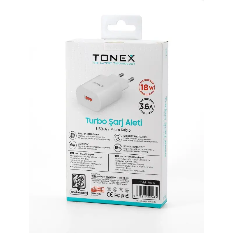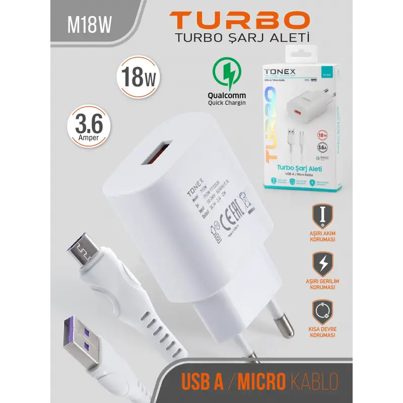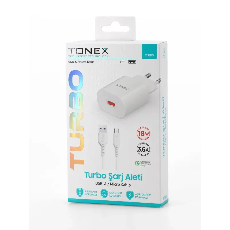 Tonex M18W Cep Telefonu Micro Hızlı Şarj Aleti Set 18W 3.6A