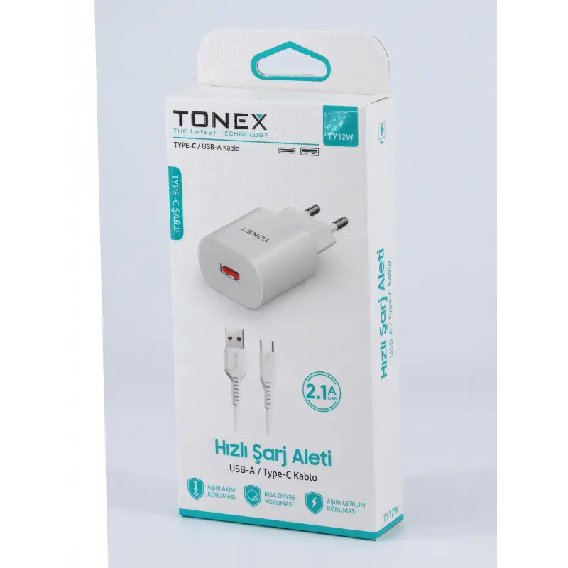 Tonex TY12W Cep Telefonu TYPE-C Hızlı Şarj Aleti Set 12W 2.1A
