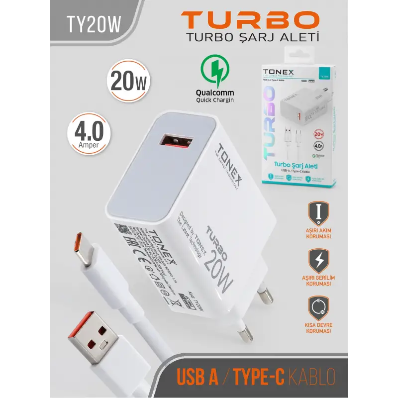 Tonex TY20W Cep Telefonu TYPE-C Hızlı Şarj Aleti 20W Set 4A