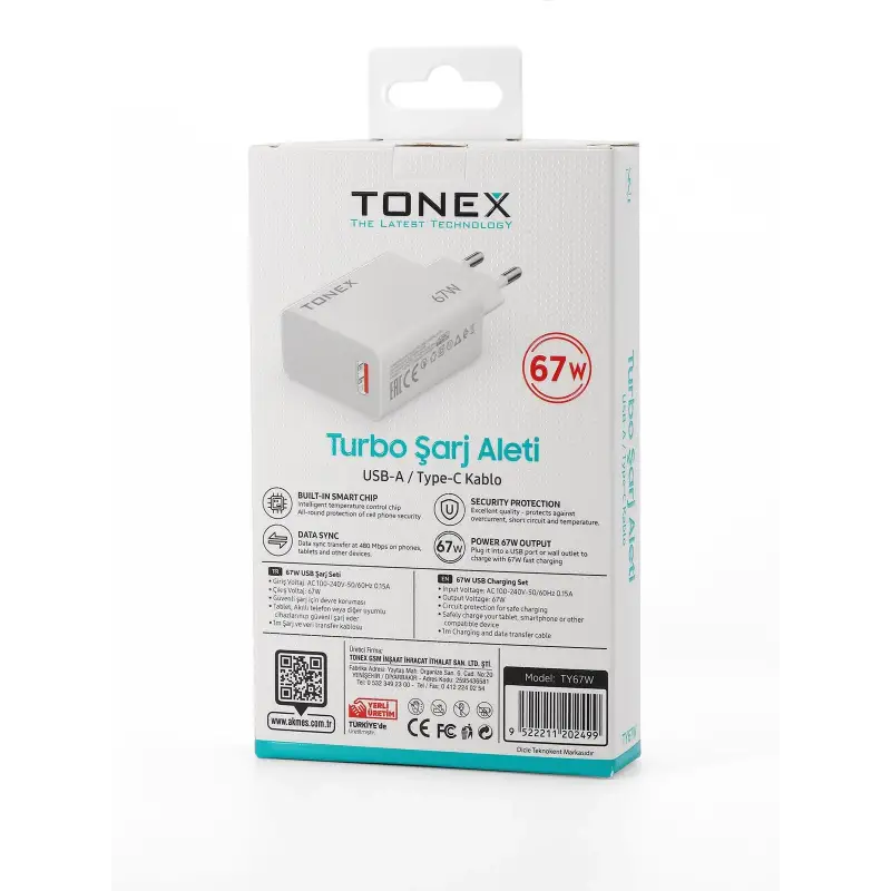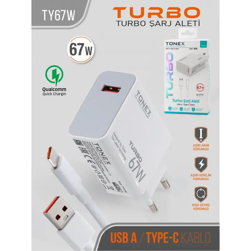 Tonex TY67W Cep Telefonu TYPE-C Turbo Hızlı Şarj Aleti 67W Set