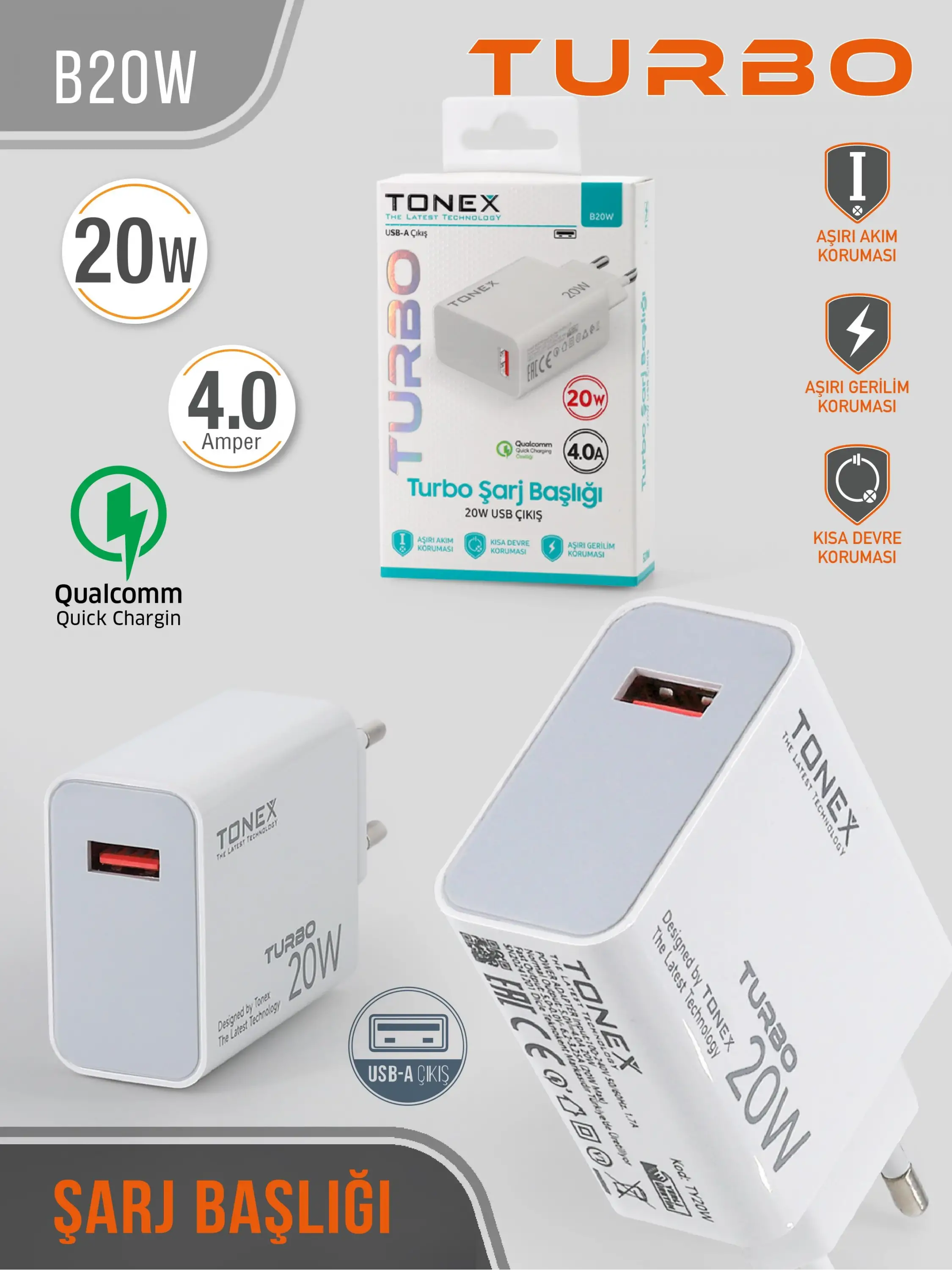 Tonex B18W Cep Telefonu USB-A Hızlı Şarj Aleti Başlık 18W 3.6A