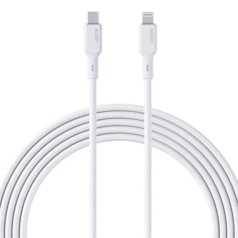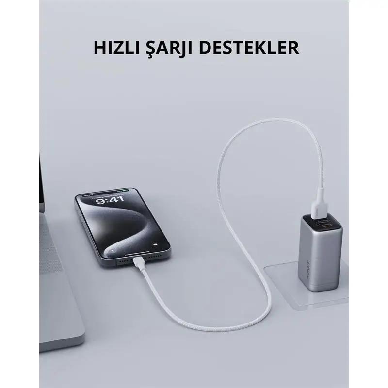 AUKEY CB-NCL1-WH NAYLON ÖRGÜLÜ 3A 480MBPS TYPE-C LIGHTNING KABLOSU 1.8MT