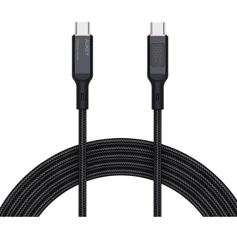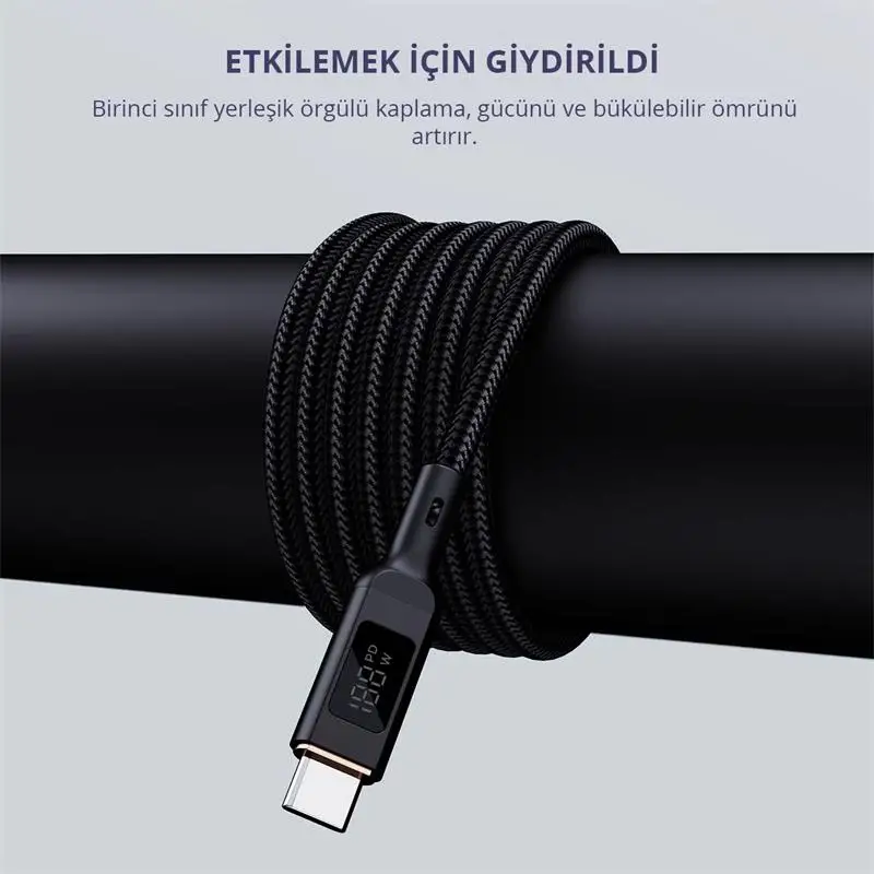 AUKEY CB-MCC102-BK 100W NAYLON ÖRGÜLÜ 5A 480MBPS TYPE-C TYPE-C LCD EKRANLI KABLO 1.8MT