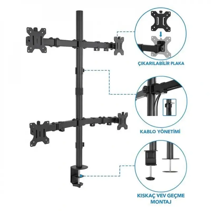 Powermaster Pm-054 13-27'' Dörtlü (Quad) Mekanik Lcd-led Gaming Monitör Tutucu Masa Stand Askı Aparatı